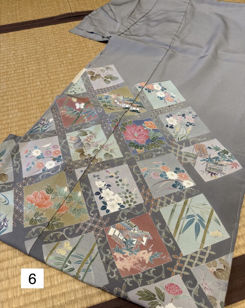 6)訪問着/仮絵羽/グレー/花柄
