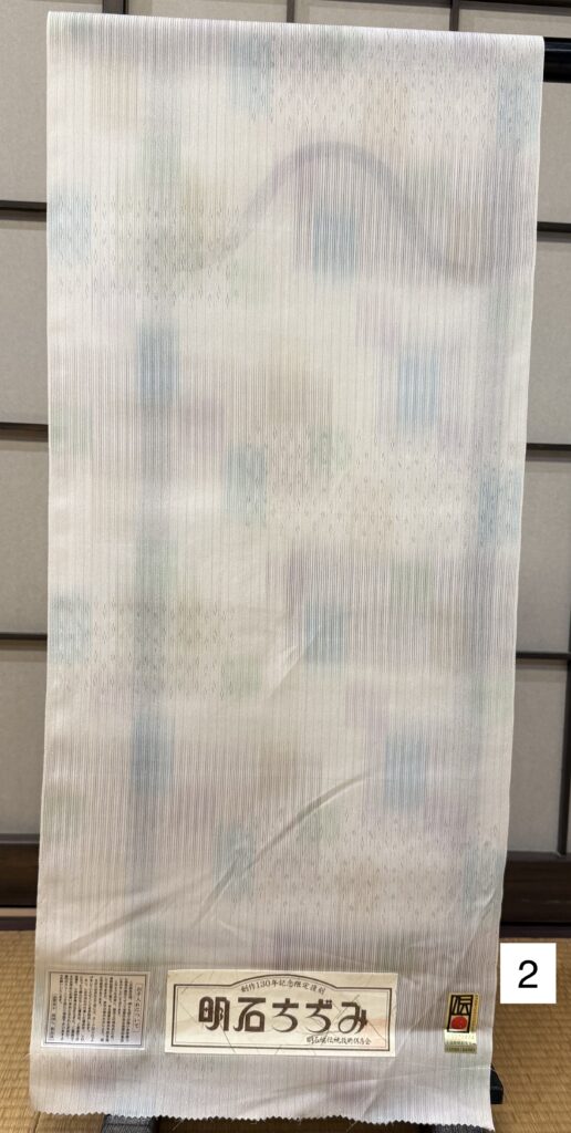 1)着物/明石ちぢみ/ベージュ/柄