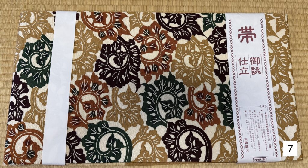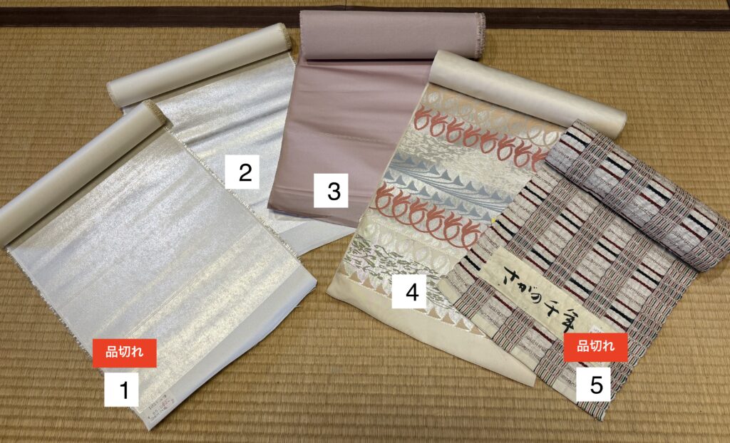 4)帯/名古屋帯/西陣5)帯/名古屋帯/さがの千年/米沢6)着物/紬/真綿紬/紅花染