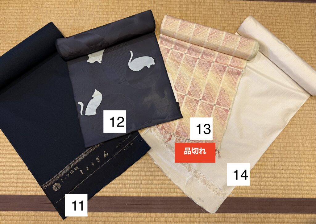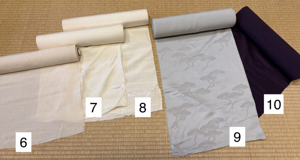 10)着物/丹後ちりめん/グレー/無地(数本分の長さあり)11)お召し/夏お召し/白